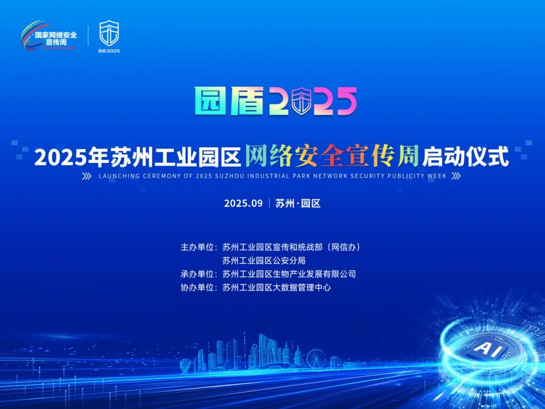 2025年国家网络安全宣传周于9月15日至21日在全国范围举行,2025年苏州工业园区网络安全宣传周于9月15日在金鸡湖路演中心同步启动。