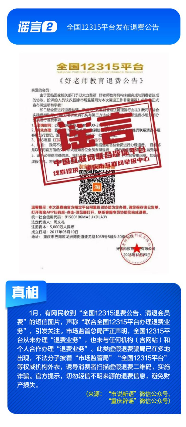 全国12315平台发布退费公告