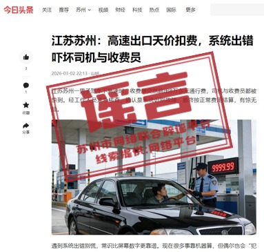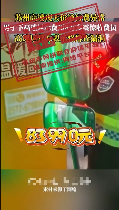 近日,网上传播“苏州高速现天价通行费异常,男子下高速显示费用8万多”相关帖文,并在该帖文里标明发生地为江苏苏州。